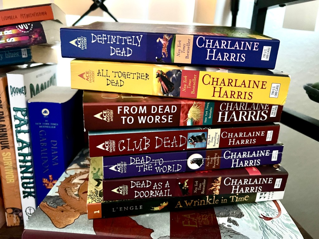Then, just last week, another small miracle: six novels from The Southern Vampire Mysteriesโthe series that inspired True Bloodโresting on a grassy mound near an abandoned lot. My husband and I were out for a walk, talking about nothing in particular, when I spotted them. A little worn, but dry and intact. I knelt down and gathered them like fruit, their covers warm from the sun. I would have paid for those books without hesitation. But fate, ever generous, simply gave them to me.